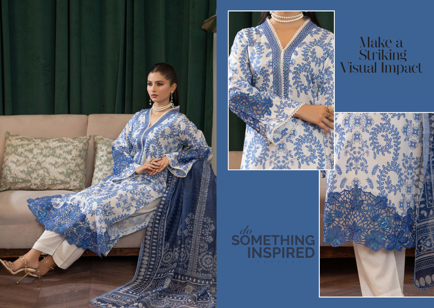 Embroidered 3PC is a radiant summer outfit crafted from premium fabric. The ensemble features a sky blue shirt adorned with elegant embroidery on the neckline and sleeves, paired with beautifully printed trousers. A soft, printed shawl with floral patterns completes the look, adding a touch of charm and comfort. Perfect for summer gatherings, this design blends warmth, elegance, and vibrant seasonal hues.